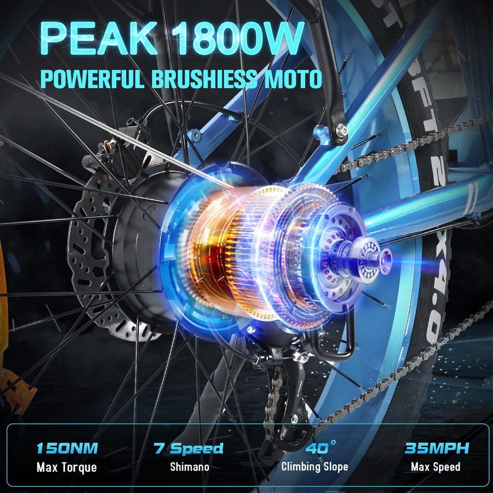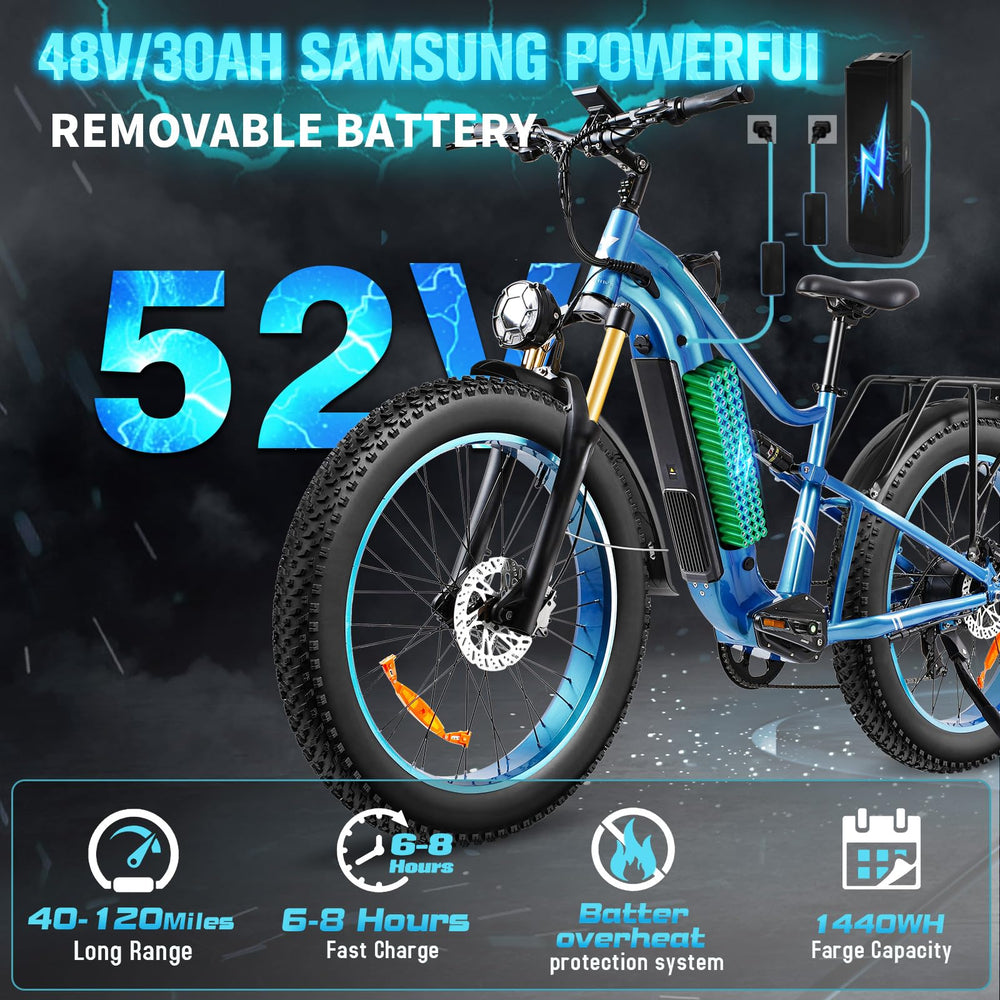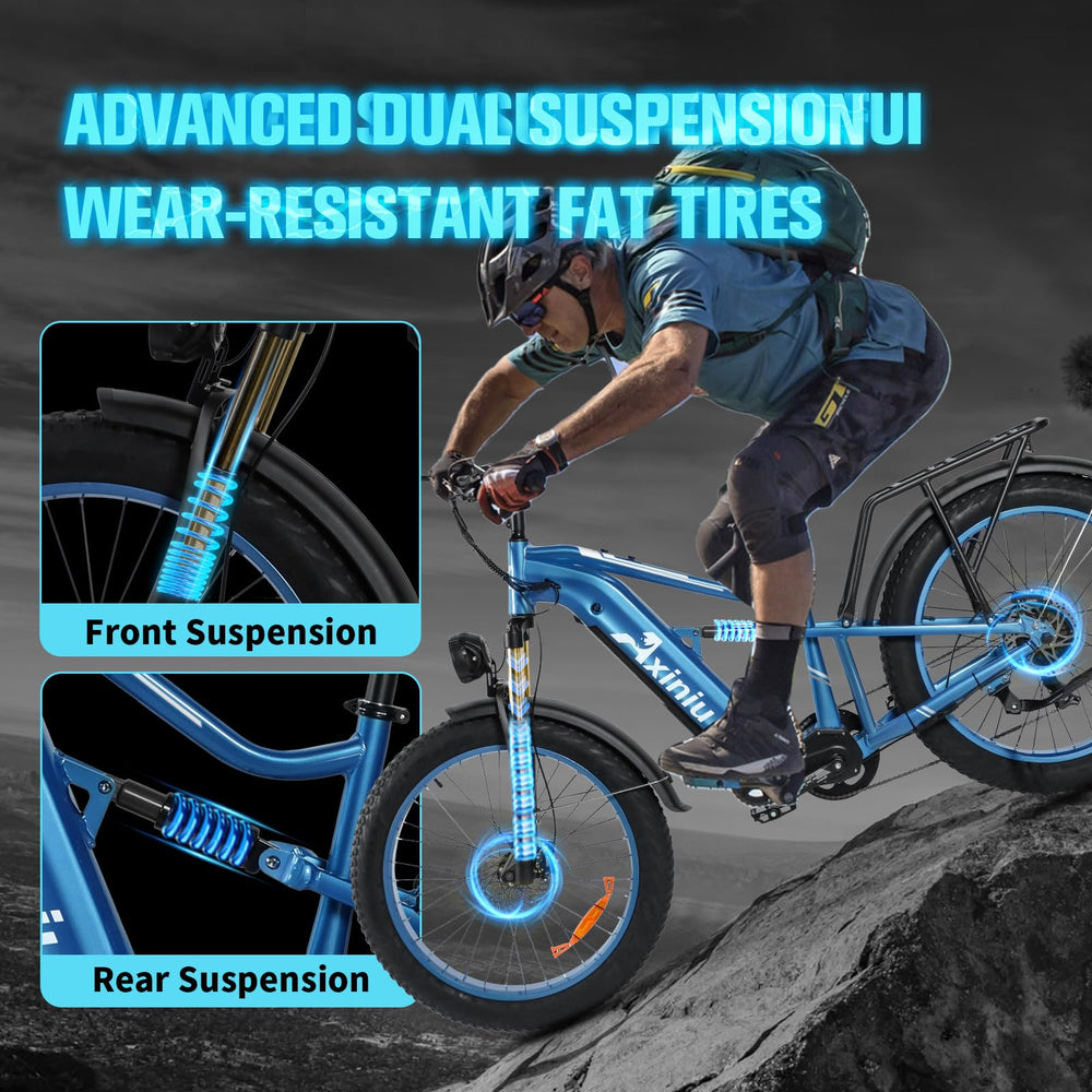 Axiniu Electric Bike for Adults, 1800W Motor 52V 30Ah Samsung Battery Electric Mountain Bicycles, 26" Fat Tire Full Suspension Beach Snow Off Road E Bike, 35MPH & 120 Miles Long Range Ebike
