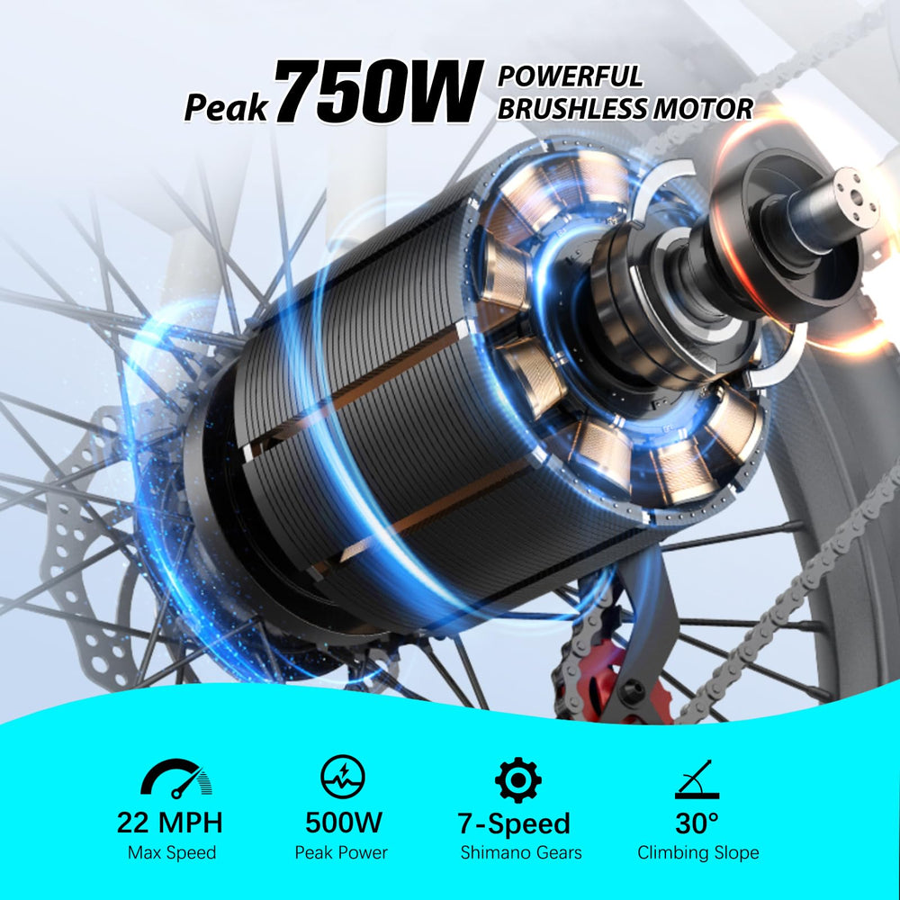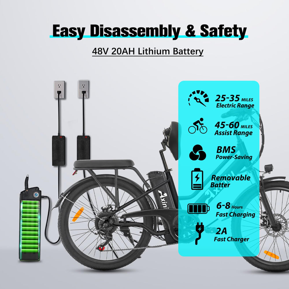 Axiniu 24 Inch Electric Bike for Adults, Step Through Ebike for Women, Peak 750W Motor 22MPH, 48V 20AH Removable Battery Up to 70 Miles, 7 Speed Dual Shock Absorber, City Cruiser Commuter Bicycle