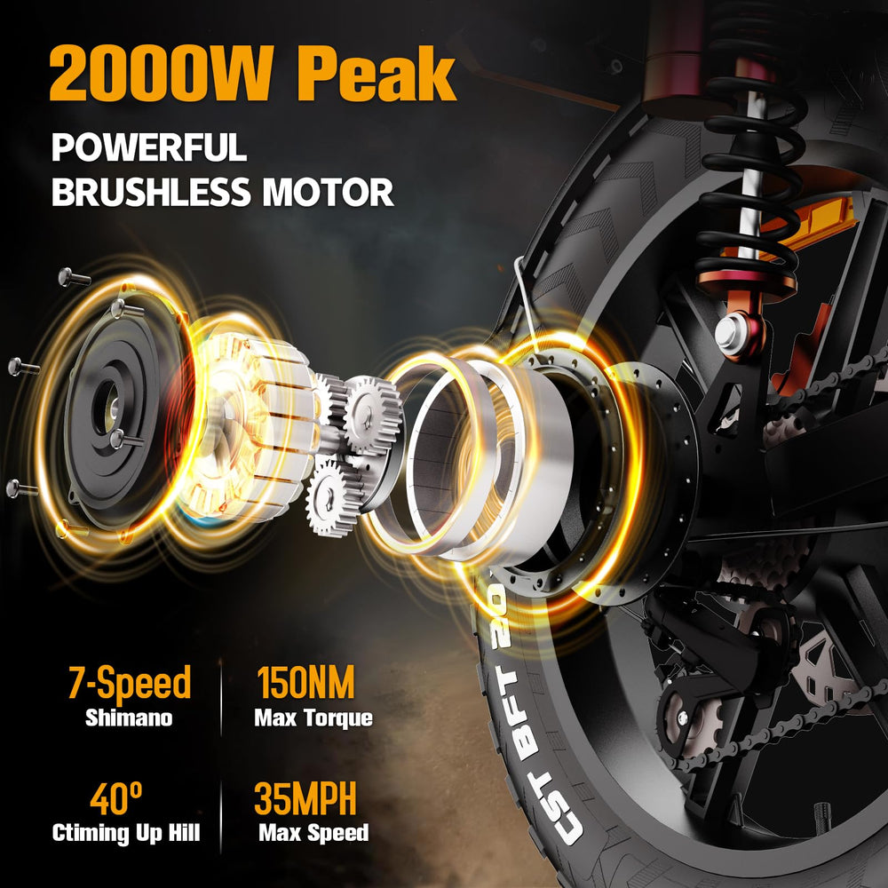 【Powerful Moped-Style EBike with 35MPH Top Speed】52V 40Ah UL-Certified Removable Battery & 1500W Motor: Equipped with a...