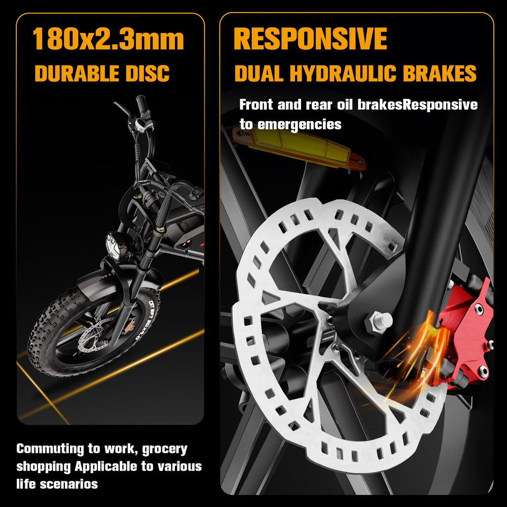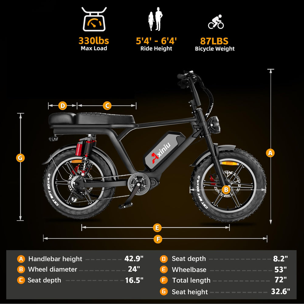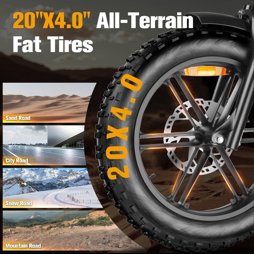 Axiniu Electric Bike for Adults, 52V 40Ah Battery Peak 2000W Motor 35MPH, 50-180 Miles, 20" Fat Tire Dirt Bicycle Dual Suspension All Terrain Motorcycle, Moped Style Ebike for Mountains Snow Sand Road